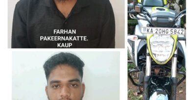 Read Moreಪಡುಬಿದ್ರಿ: ಇಲ್ಲಿನ ಬಡಾ ಗ್ರಾಮದ ಉಚ್ಚಿಲ ಪೊಲ್ಯ ಬುಬಲ್ ಮೈದಾನದ ಬಳಿ ಡ್ರಗ್ಸ್ ಮಾರಾಟ ಮಾಡಲೆತ್ನಿಸುತ್ತಿದ್ದ ಇಬ್ಬರು ಆರೋಪಿಗಳನ್ನು ಪಡುಬಿದ್ರಿ ಪೊಲೀಸರು ಬಂಧಿಸಿದ್ದಾರೆ. ಬಂಧಿತ ಆರೋಪಿಗಳನ್ನು ಕಾಪು