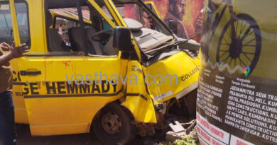 Read Moreಕುಂದಾಪುರ: ಅತೀ ವೇಗದಿಂದ ಚಲಾಯಿಸುತ್ತಿದ್ದ ಶಾಲಾವಾಹನವೊಂದು ಬೈಕ್ ತಪ್ಪಿಸಲು ಹೋಗಿ ವಿದ್ಯುತ್ ಕಂಬಕ್ಕೆ ಡಿಕ್ಕಿ ಹೊಡೆದ ಪರಿಣಾಮ ಶಾಲಾ ವಾಹನ ಮುಂಭಾಗ ಸಂಪೂರ್ಣ ಜಖಂ ಆಗಿದ್ದು, ಚಾಲಕನ