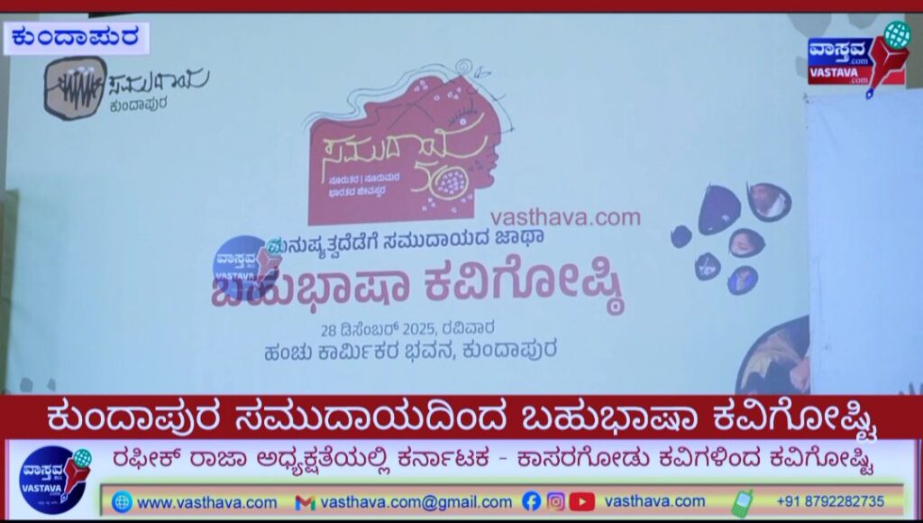 ಅವರು ಭಾನುವಾರ ಕುಂದಾಪುರದ ಹೆಂಚು ಕಾರ್ಮಿಕರ ಭವನದಲ್ಲಿ ಸಮುದಾಯ ಕುಂದಾಪುರ, ಸಮುದಾಯ 50 ಸಿದ್ಧತಾ ಸಮಿತಿ ಸಹಯೋಗದಲ್ಲಿ ಹಮ್ಮಿಕೊಳ್ಳಲಾದ ಮನುಷ್ಯತ್ವದೆಡೆಗೆ ಸಮುದಾಯದ ಜಾಥಾ – ಬಹುಭಾಷಾ ಕವಿಗೋಷ್ಠಿಯ ಅಧ್ಯಕ್ಷತೆ ವಹಿಸಿ ಮಾತನಾಡಿದರು.