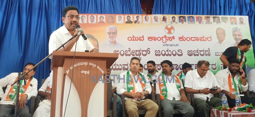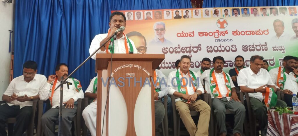 ಅವರು ಭಾನುವಾರ ತೆಕ್ಕಟ್ಟೆಯ ಶ್ರೀ ದುರ್ಗಾಪರಮೇಶ್ವರಿ ಕಲ್ಯಾಣ ಮಂಟಪದಲ್ಲಿ ಯುವ ಕಾಂಗ್ರೆಸ್ ಕುಂದಾಪುರ ವತಿಯಿಂದ ಹಮ್ಮಿಕೊಳ್ಳಲಾಗಿದ್ದ ಅಂಬೇಡ್ಕರ್ ಜಯಂತಿ ಆಚರಣೆ ಮತ್ತು ಯುವ ಕಾಂಗ್ರೆಸ್ ಕಾರ್ಯಕರ್ತರ ಸಭೆಯನ್ನು ಉದ್ಘಾಟಿಸಿ ಅಂಬೇಡ್ಕರ್ ಭಾವಚಿತ್ರಕ್ಕೆ ಪುಷ್ಪಾರ್ಚನೆ ಮಾಡಿ ಮಾತನಾಡಿದರು.