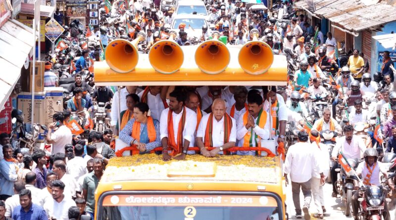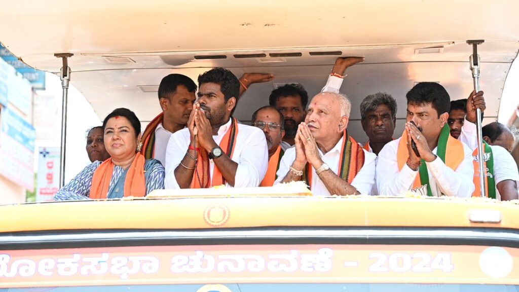 ಬೈಂದೂರಿನಲ್ಲಿ ಯಡಿಯೂರಪ್ಪ, ಅಣ್ಣಾಮಲೈ, ತಾರಾ ಬೃಹತ್ ರೋಡ್ ಶೋ