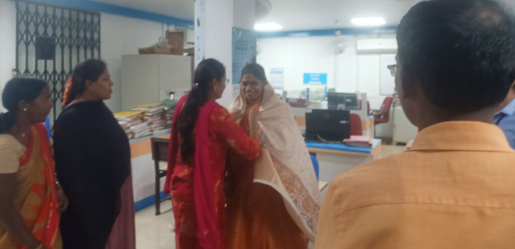 ಬುಧವಾರ ಸಂಜೆ ಬ್ಯಾಂಕಿನಲ್ಲಿ ನಡೆದ ಔಪಚಾರಿಕ ಕಾರ್ಯಕ್ರಮದಲ್ಲಿ ಬ್ಯಾಂಕಿನ ಎಲ್ಲಾ ಸಿಬ್ಬಂದಿಗಳ ಸಹಕಾರ ಸ್ಮರಿಸಿದರು. ಇದೇ ಸಂದರ್ಭ ಸಿಬ್ಬಂದಿಗಳು ಶಾಲು ಹೊದೆಸಿ ಸನ್ಮಾನಿಸಿ ಗೌರವಿಸಿದರು. ಬ್ಯಾಂಕಿನ ಸೀನಿಯರ್ ಮ್ಯಾನೇಜರ್ ಗ್ಯಾನೇಶ್ ಅವರು ಸ್ಮರಣಿಕೆ ನೀಡಿ ಗೌರವಿಸಿದರು.