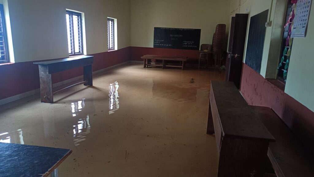ಬೈಂದೂರು: ರಾತ್ರಿಯಿಡೀ ಸುರಿದ ಭಾರೀ ಮಳೆಗೆ ಶಾಲಾ ಕೊಠಡಿ ಒಳಗೆ ನೀರು ನುಗ್ಗಿದ ಘಟನೆ ಶುಕ್ರವಾರ ರಾತ್ರಿಯಿಂದ ಬೈಂದೂರು ತಾಲೂಕಿನ ಯಡ್ತರೆ ಗ್ರಾಮದ ಸ.ಹಿ.ಪ್ರಾ ಶಾಲೆ ರಾಹುತನಕಟ್ಟೆ ಎಂಬ ಶಾಲೆಯಲ್ಲಿ ನಡೆದಿದೆ. ರಾತ್ರಿಯಿಂದ ಸುರಿಯುತ್ತಿರುವ ಮಳೆಯಿಂದಾಗಿ 7ನೇ ತರಗತಿ ಹಾಗೂ ಮುಖ್ಯೋಪಾಧ್ಯಾಯರ ಕಚೇರಿಗೆ ನೀರು ನುಗ್ಗಿದೆ.