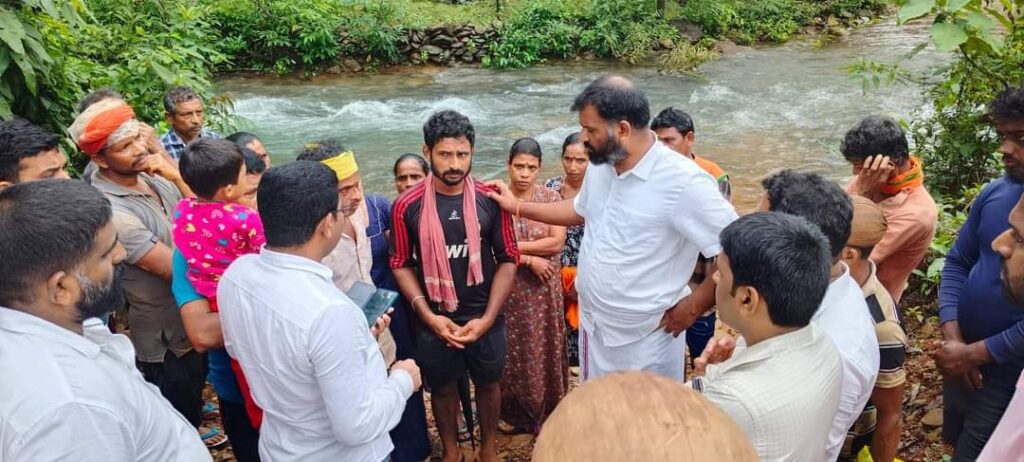 ಕುಂದಾಪುರ: ಬೈಂದೂರು ತಾಲೂಕಿನ ಯೆಳಜಿತ್ ಗ್ರಾಮದ ಹುಲ್ಕಡ್ಡಿ ಗುಡಿಕೇರಿಯಲ್ಲಿ ಕಾಲುಸಂಕ ಇಲ್ಲದೆ ಪರದಾಡುತ್ತಿರುವ ಗ್ರಾಮಸ್ಥರ ಸಂಕಷ್ಟದ ಸುದ್ದಿ ತಿಳಿದ ತಕ್ಷಣ ಬೈಂದೂರು ಶಾಸಕ ಗುರುರಾಜ್ ಗಂಟಿಹೊಳೆ ಭೇಟಿ ನೀಡಿ ಸಂತ್ರಸ್ಥರನ್ನು ಸಂತೈಸಿದ್ದಾರೆ.