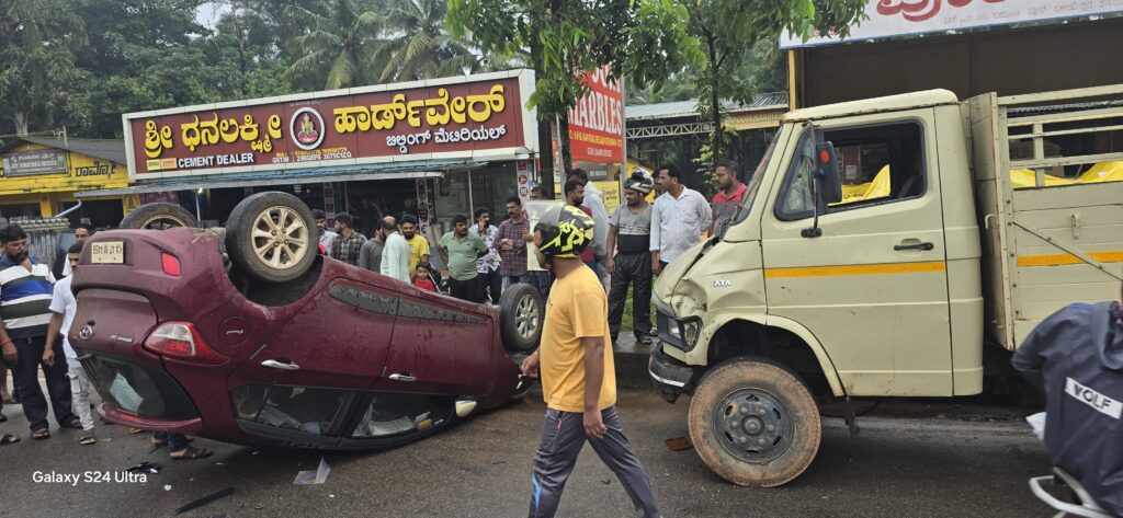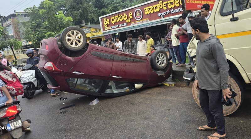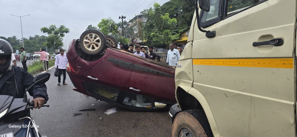 ಘಟನೆಯಲ್ಲಿ ಹುಂಡೆ ಐ 10 ಕಾರು ನಾಲ್ಕು ಪಲ್ಟಿಯಾಗಿ ಸರ್ವೀಸ್ ರಸ್ತೆಯಲ್ಲಿ ಬರುತ್ತಿದ್ದ 407 ಲಾರಿಗೆ ಗುದ್ದಿ, ಮೇಲ್ಮುಖವಾಗಿ ಪಲ್ಟಿಯಾಗಿದೆ. ಘಟನೆಯಲ್ಲಿ ಅದೃಷ್ಟವಶಾತ್ ಯಾರಿಗೂ ಪ್ರಾಣ ಹಾನಿಯಾಗಿಲ್ಲ.