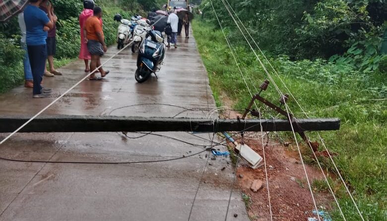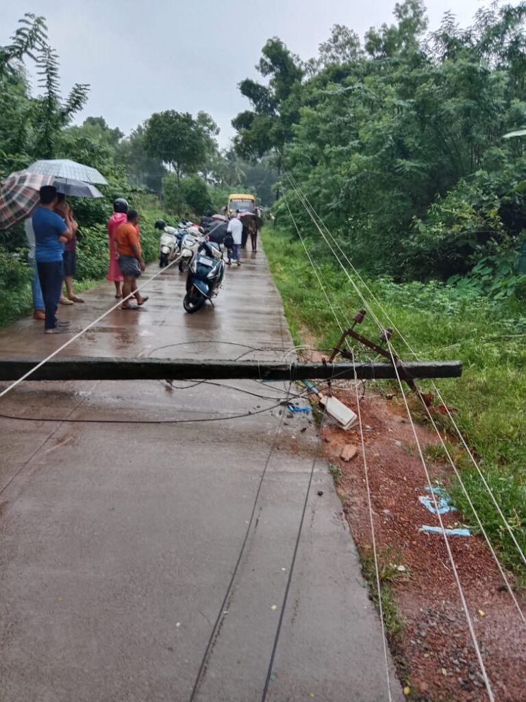 ಗಾಳಿ ಮಳೆಗೆ ಬೃಹತ್ ಮರವೊಂದು ಕೆಳಕ್ಕುರುಳಿದೆ. ಇದರಿಂದಾಗಿ ವಿದ್ಯುತ್ ತಂತಿಗಳು ಸಹ ಧಾರಾಶಾಹಿಯಾಗಿವೆ. ಸಂಚಾರ ಅಸ್ತವ್ಯಸ್ತಗೊಂಡಿದೆ. ಶಾಲೆ ಬಸ್ಸೊಂದು ಇದೇ ಮಾರ್ಗವಾಗಿ ಸಂಚರಿಸುತ್ತಿದ್ದು, ಮರ ಬಿದ್ದಾಗ ಆ ಬಸ್ ಕೇವಲ 20 ಮೀ. ದೂರದಲ್ಲಿತ್ತು. ಅದೃಷ್ಟವಶಾತ್ ದೊಡ್ಡ ದುರಂತವೊಂದು ತಪ್ಪಿದೆ. ಸ್ಥಳಕ್ಕೆ ಮೆಸ್ಕಾಂ ಸಿಬ್ಬಂದಿಗಳು ಆಗಮಿಸಿ ಸ್ಥಳೀಯರ ಸಹಾಕಾರದೊಂದಿಗೆ ತೆರವು ಕಾರ್ಯಾಚರಣೆ ನಡೆದಿದೆ.