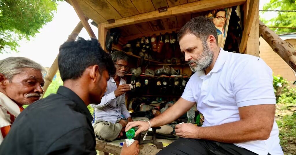 ಚಪ್ಪಲಿ ಅಂಗಡಿಗೆ ರಾಹುಲ್ ಗಾಂಧಿ ಭೇಟಿ ನೀಡಿದ ಬಳಿಕ ಅಂಗಡಿ ಮಾಲೀಕ ರಾಮ್ ಚೇತ್ ಈಗ ತಮ್ಮೂರಿನಲ್ಲಿ ‘ಸೆಲೆಬ್ರಿಟಿ’ ಆಗಿಬಿಟ್ಟಿದ್ದಾರೆ. ಸುಲ್ತಾನಪುರದ ಹೊರವಲಯದ ವಿಧಾಯಕನಗರದಲ್ಲಿ ರಾಮ್ ಚೇತ್ ಪುಟ್ಟ ಅಂಗಡಿ ಇಟ್ಟುಕೊಂಡಿದ್ದಾರೆ. ಜುಲೈ 26ರಂದು ಆ ಮಾರ್ಗವಾಗಿ ತೆರಳುತ್ತಿದ್ದ ವೇಳೆ, ರಾಹುಲ್ ಗಾಂಧಿ ಅವರು ರಾಮ್ ಚೇತ್ ಅಂಗಡಿಗೆ ಭೇಟಿ ನೀಡಿ, ಅವರ ಕುಟುಂಬ ಹಾಗೂ ಕಷ್ಟಗಳ ಕುರಿತು ಮಾತನಾಡಿದ್ದರು. ಅದೇ ವೇಳೆ, ಚಪ್ಪಲಿಯನ್ನು ಹೊಲಿದಿದ್ದ ರಾಹುಲ್ ಗಾಂಧಿ, ಶೂ ಕೂಡ ಸಿದ್ಧಪಡಿಸಿದ್ದರು.