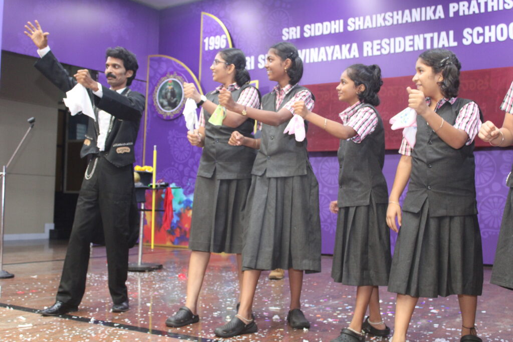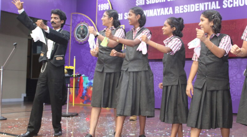 ಕುಂದಾಪುರ: ವಿದ್ಯಾರ್ಥಿಗಳಿಗೆ ಗುಣಮಟ್ಟದ ಶಿಕ್ಷಣವನ್ನು ನೀಡುವುದರ ಜೊತೆ ಜೊತೆಯಲ್ಲಿ ಕಲೆ, ಸಾಹಿತ್ಯ, ಕೌಶಲ್ಯಗಳತ್ತಲೂ ವಿಶೇಷ ಆದ್ಯತೆ ನೀಡುವ ಹಟ್ಟಿಯಂಗಡಿಯ ಶ್ರೀ ಸಿದ್ಧಿವಿನಾಯಕ ವಸತಿ ಶಾಲೆಯಲ್ಲಿ ಶುಕ್ರವಾರ ವಿದ್ಯಾರ್ಥಿಗಳಿಗಾಗಿ ಜಾದೂ ಪ್ರದರ್ಶನವನ್ನು ಏರ್ಪಡಿಸಲಾಯಿತು. ಖ್ಯಾತ ಜಾದೂಗಾರ ಸತೀಶ್ ಹೆಮ್ಮಾಡಿಯವರ ಭ್ರಮಾಲೋಕ ತಂಡವು ವಿಭಿನ್ನ ಜಾದೂ ಕೈಚಳಕಗಳ ಮೂಲಕ ವಿದ್ಯಾರ್ಥಿಗಳನ್ನು ರಂಜಿಸಿತು.