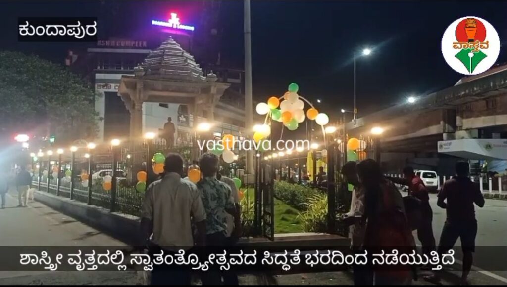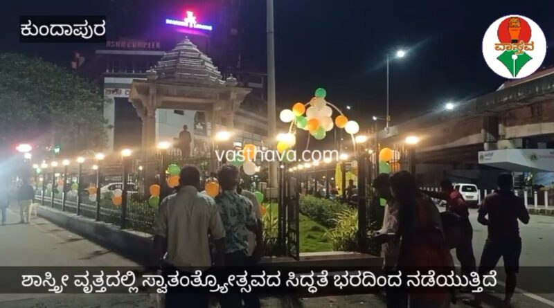 ಕುಂದಾಪುರ: 75ರ ಸುವರ್ಣ ಸಂಭ್ರಮದ ಸ್ವಾತಂತ್ರ್ಯ ದಿನಾಚರಣೆಗೆ ಕ್ಷಣಗಣನೆ ಆರಂಭಗೊಳ್ಳುತ್ತಿರುವಂತೆಯೇ ಕುಂದಾಪುರದ ಹೃದಯ ಭಾಗ ಶಾಸ್ತ್ರಿ ವೃತ್ತದಲ್ಲಿ ಸ್ವಾತಂತ್ರೋತ್ಸವಕ್ಕೆ ಸಕಲ ಸಿದ್ಧತೆಗಳು ನಡೆಯುತ್ತಿದೆ.