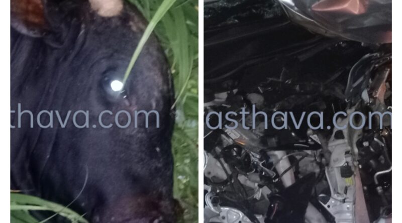 ತ್ರಾಸಿ: ಹೆದ್ದಾರಿಯಲ್ಲಿ ಅಡ್ಡಬಂದ (ದನ)ಬಸವ – ಕಾರು ಜಖಂ, ದನ ಸಾವು