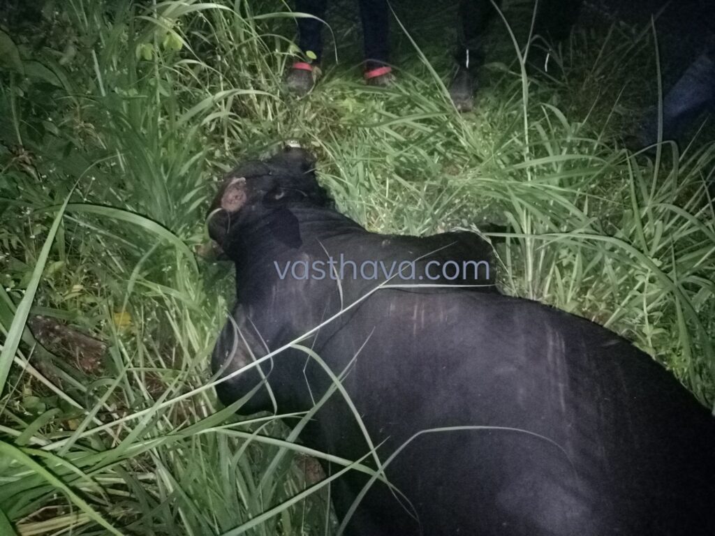 ಕುಂದಾಪುರ: ರಾಷ್ಟ್ರೀಯ ಹೆದ್ದಾರಿ 66ರಲ್ಲಿ ತ್ರಾಸಿ ಸಮೀಪದ ಮೊವಾಡಿಯಲ್ಲಿ ಕಪ್ಪು ದನ (ಎತ್ತು) ಅಡ್ಡ ಬಂದ ಪರಿಣಾಮ ಕಾರು ಡಿಕ್ಕಿಯಾಗಿ ದನ ಸತ್ತು ಕಾರು ಜಖಂಗೊಂಡ ಘಟನೆ ಗುರುವಾರ ಸಂಜೆ 7.30ರ ಸುಮಾರಿಗೆ ನಡೆದಿದೆ.