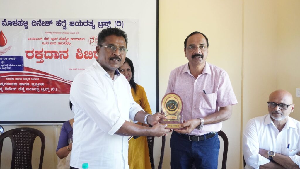 ಮೊಳಹಳ್ಳಿ ದಿನೇಶ್ ಹೆಗ್ಡೆ ಜಯರತ್ನ ಟ್ರಸ್ಟ್ ನ ಪ್ರವರ್ತಕರು ಮೊಳಹಳ್ಳಿ ದಿನೇಶ್ ಹೆಗ್ಡೆ ಕಾರ್ಯಕ್ರಮದ ಅಧ್ಯಕ್ಷತೆ ವಹಿಸಿ ಮಾತನಾಡಿ, ಒಬ್ಬ ವ್ಯಕ್ತಿ ನೀಡುವ ರಕ್ತದಿಂದ ಮೂರು ವ್ಯಕ್ತಿಗಳ ಜೀವ ಉಳಿಸಬಹುದಾದರೆ ಅಂತಹ ರಕ್ತದಾನಕ್ಕಿಂತ ಶ್ರೇಷ್ಠವಾದ ದಾನ ಇನ್ನೊಂದಿಲ್ಲ ಎಂಬುದನ್ನು ಮನಗಂಡು ನನ್ನ ಹುಟ್ಟು ಹಬ್ಬದ ದಿನದಂದು ರಕ್ತದಾನ ಶಿಬಿರವನ್ನು ಹಮ್ಮಿಕೊಂಡಿದ್ದೇನೆ. ಜಾತಿ, ಧರ್ಮ, ಲಿಂಗ ಭೇದವಿಲ್ಲದೆ ಮಾಡಬಹುದಾದ ಏಕೈಕ ದಾನ ಅಂದರೆ ಅದು ರಕ್ತದಾನ. ಸಮಾಜದ ಎಲ್ಲಾ ಯುವಕ ಯುವತಿಯರು ರಕ್ತದಾನ ಮಾಡುವ ಮೂಲಕ ಮನುಷ್ಯನ ಜೀವವನ್ನು ಕಾಪಾಡುವ ಪಣತೊಡಬೇಕಾಗಿದೆ ಎಂದರು. ಇದೇ ಸಂದರ್ಭ ಸ್ವತಃ ತಾವೇ ರಕ್ತದಾನ ಮಾಡಿದರು.