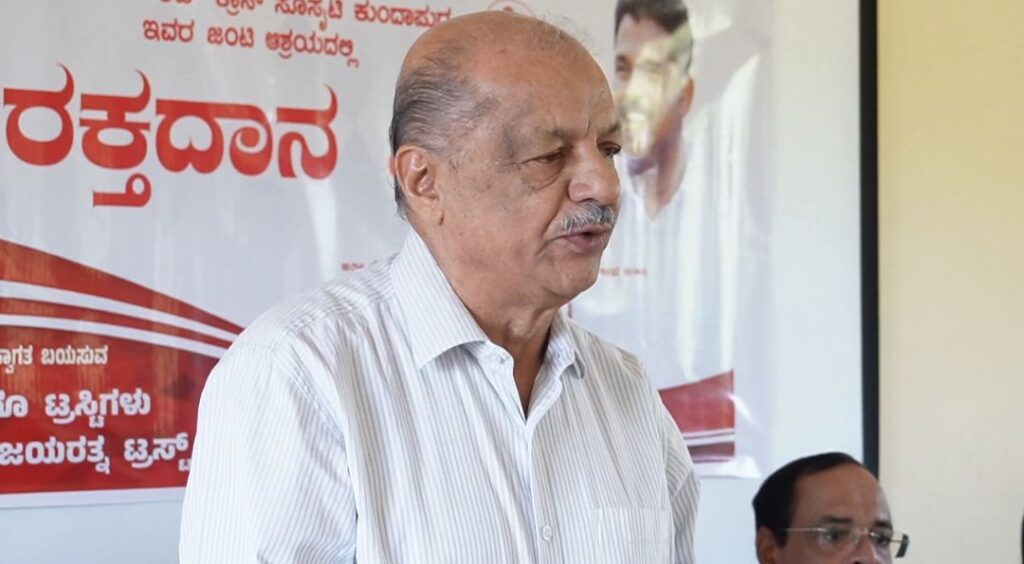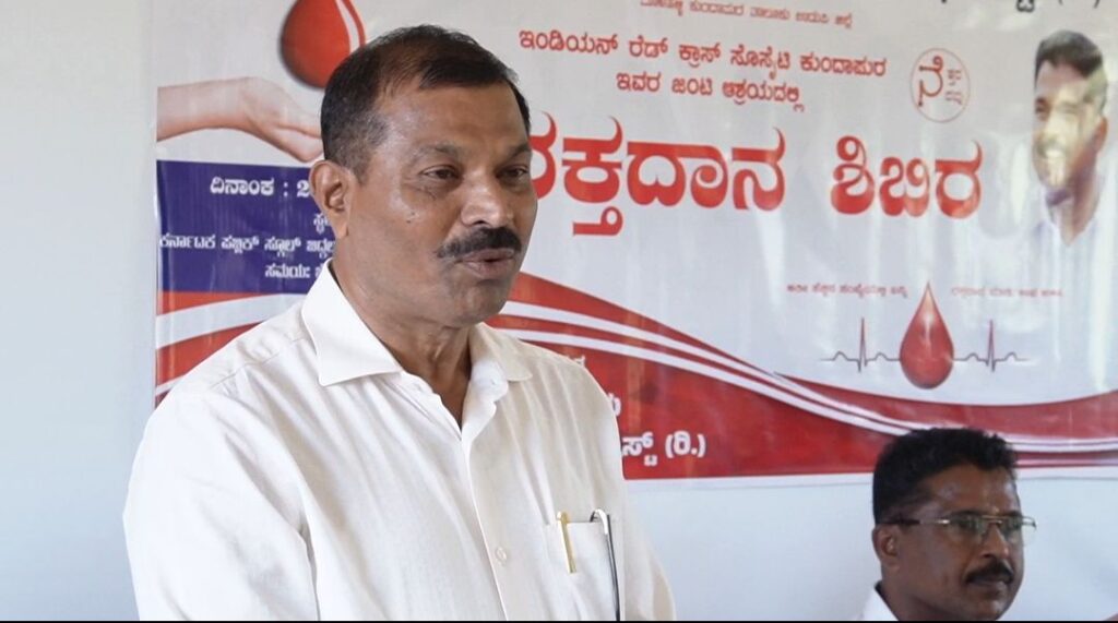 ಕುಂದಾಪುರ: ತಾಯಿಯ ಹೆಸರಿನ ಟ್ರಸ್ಟಿನಲ್ಲಿ ತನ್ನ ಹುಟ್ಟು ಹಬ್ಬವನ್ನು ಆಚರಿಸುತ್ತ ರಕ್ತದಾನದಂತಹ ಮಹತ್ಕಾರ್ಯಕ್ಕೆ ಕೈ ಹಾಕಿರುವುದು ಅತ್ಯಂತ ಶ್ರೇಷ್ಠ ಕಾರ್ಯಕ್ರಮ ಮತ್ತು ಸಮಾಜಕ್ಕೆ ಮಾದರಿಯಾದ ಒಂದು ಚಿಂತನೆ ಎಂದು ಸುಣ್ಣಾರಿ ಎಕ್ಸಲೆಂಟ್ ಪಿಯು ಕಾಲೇಜಿನ ಚೇರ್ಮನ್ ಎಂ. ಮಹೇಶ್ ಹೆಗ್ಡೆ ಹೇಳಿದರು. ಅವರು ಬಿದ್ಕಲ್ಕಟ್ಟೆಯ ಕೆ. ಪಿ. ಎಸ್ ಪ್ರೌಢಶಾಲೆಯಲ್ಲಿ ಮೊಳಹಳ್ಳಿ ದಿನೇಶ್ ಹೆಗ್ಡೆ ಹುಟ್ಟು ಹಬ್ಬದ ಪ್ರಯುಕ್ತ ಮೊಳಹಳ್ಳಿ ದಿನೇಶ್ ಹೆಗ್ಡೆ ಜಯರತ್ನ ಟ್ರಸ್ಟ್ ಹಾಗೂ ಭಾರತೀಯ ರೆಡ್ ಕ್ರಾಸ್ ಸೊಸೈಟಿ ಕುಂದಾಪುರ ಇವರ ಜಂಟಿ ಆಶ್ರಯದಲ್ಲಿ ಹಮ್ಮಿಕೊಂಡ ಬೃಹತ್ ರಕ್ತದಾನ ಶಿಬಿರವನ್ನು ಉದ್ಘಾಟಿಸಿ ಮಾತನಾಡಿದರು.