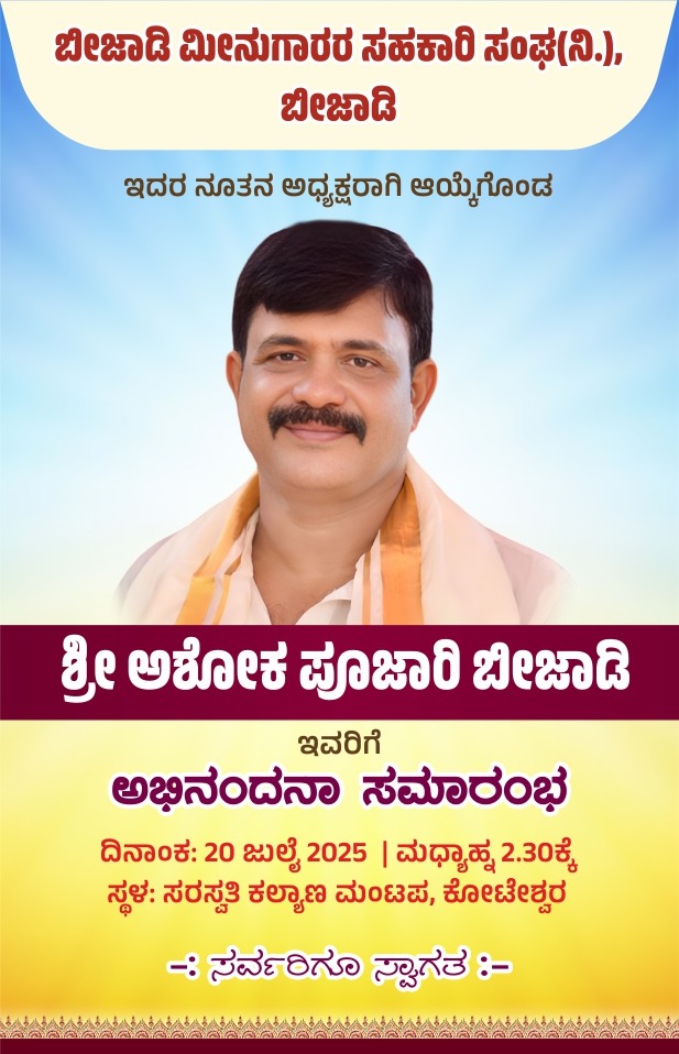ಬೀಜಾಡಿ: ಮೀನುಗಾರಿಕಾ ಸೇವಾ ಸಹಕಾರಿ ಸಂಘದ ಅಧ್ಯಕ್ಷರಾಗಿ ಅಶೋಕ ಪೂಜಾರಿ ಬೀಜಾಡಿ – ಜುಲೈ 20ರಂದು ಅಭಿನಂದನಾ ಸಮಾರಂಭ