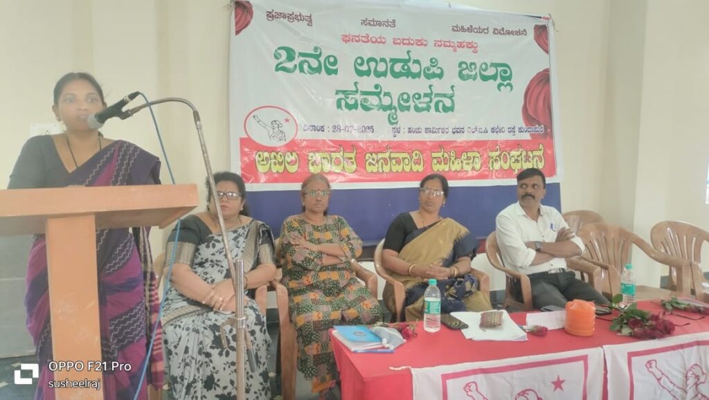 ಜಿಲ್ಲಾ ಸಮ್ಮೇಳನವನ್ನು ಉದ್ಘಾಟಿಸಿದ ರಾಜ್ಯ ಉಪಾಧ್ಯಕ್ಷೆ ಕೆ.ಎಸ್. ಲಕ್ಷ್ಮಿ ಮಾತನಾಡಿ, ಪ್ರಸ್ತುತ ಕಾಲಘಟ್ಟದಲ್ಲಿ ಕೇಂದ್ರ ರಾಜ್ಯ ಸರ್ಕಾರಗಳು ಮಹಿಳೆಯರ ಘನತೆಯ ಮೇಲೆ ಹೇಗೆಲ್ಲಾ ದಾಳಿಗಳನ್ನು ತೀವ್ರಗೊಳಿಸಿದೆ ಎನ್ನುವುದನ್ನು ನಾವೆಲ್ಲರೂ ಮನಗಾಣಬೇಕಿದೆ. ಅಸಮಾನತೆ ಬಲಗೊಳ್ಳುತ್ತಿರುವ ಈ ಸಂದರ್ಭದಲ್ಲಿ ಮಹಿಳಾ ಸಮಾನತೆಗಾಗಿ ಹೋರಾಟವನ್ನು ಬಲಗೊಳಿಸುವ ಜವಾಬ್ದಾರಿಯನ್ನು ಎಲ್ಲರು ನಿರ್ವಹಿಸಬೇಕಿದೆ ಎಂದರು.