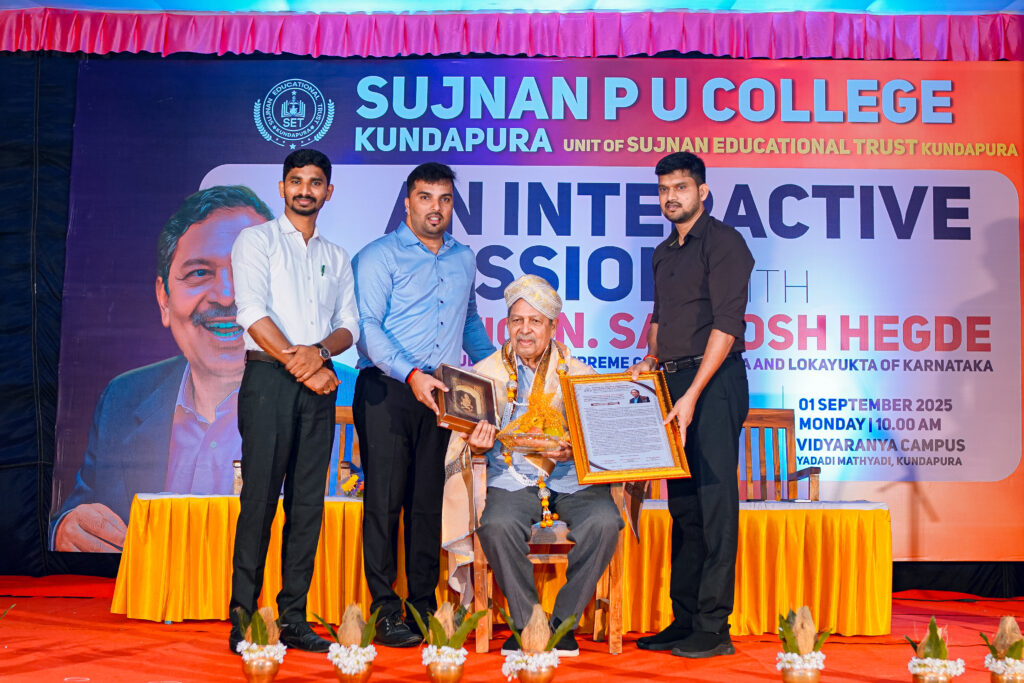 ವಿದ್ಯಾರಣ್ಯ: ಮೌಲ್ಯಗಳ ಪಾಲನೆಯಾದಾಗ ವ್ಯಕ್ತಿತ್ವ ಉಳಿಯುತ್ತದೆ – ಸುಜ್ಞಾನ ಪಿಯು ಕಾಲೇಜಿನ ವಿದ್ಯಾರ್ಥಿಗಳಿಗೆ ನಿವೃತ್ತ ನ್ಯಾಯಮೂರ್ತಿ ಸಂತೋಷ್ ಹೆಗ್ಡೆ ಕಿವಿಮಾತು
