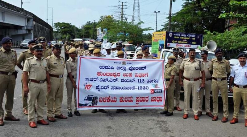ಸೈಬರ್ ಅಪರಾಧ, ತುರ್ತು ಸಂಪರ್ಕ ಜಾಗೃತಿಗೆ ಪೊಲೀಸ್ ಜಾಥಾಕ್ಕೆ ಕುಂದಾಪುರದಲ್ಲಿ ಚಾಲನೆ