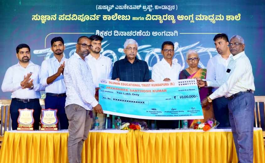 ಇದೇ ಸಂದರ್ಭ ಅಪಘಾತಕ್ಕೀಡಾಗಿ ಸಾವನ್ನಪ್ಪಿದ ಶಿಕ್ಷಕ ಸಂತೋಷ್ ಅವರ ಕುಟುಂಬಕ್ಕೆ ಸುಜ್ಞಾನ ಎಜುಕೇಶನಲ್ ಟ್ರಸ್ಟ್ ವತಿಯಿಂದ ಶಾಲೆಯ ಆಡಳಿತ ಮಂಡಳಿ, ಶಿಕ್ಷಕರು,ಉಪನ್ಯಾಸಕರು ಮತ್ತು ಬೋಧಕೇತರ ಸಿಬ್ಬಂದಿಗಳು, ವಿದ್ಯಾರ್ಥಿಗಳು ಹಾಗೂ ವಿದ್ಯಾರ್ಥಿಗಳ ಪೋಷಕರು ಒಗ್ಗೂಡಿ ಈ ದೊಡ್ಡ ಮೊತ್ತವನ್ನು ಸಂಗ್ರಹಿಸಿದ 10 ಲಕ್ಷ ರೂಪಾಯಿಗಳ ಆರ್ಥಿಕ ನೆರವು ನೀಡಲಾಗಿದ್ದು, ಮೃತರ ಪತ್ನಿ ಜಯಶ್ರೀ ಅವರ ಹೆಸರಿನಲ್ಲಿ ಠೇವಣಿ ಇಡಲಾಯಿತು. ಸಂಸ್ಥೆಯ ಕಾರ್ಯದರ್ಶಿ ಪ್ರತಾಪ್ ಚಂದ್ರ ಶೆಟ್ಟಿ, ಪ್ರಾಂಶುಪಾಲ ರಂಜನ್ ಬಿ.ಶೆಟ್ಟಿ, ಮುಖ್ಯೋಪಾಧ್ಯಾಯ ಪ್ರದೀಪ್ ಕೆ. ಉಪಸ್ಥಿತರಿದ್ದರು. ರಜತ್ ಭಟ್ ನಿರೂಪಿಸಿದರು.