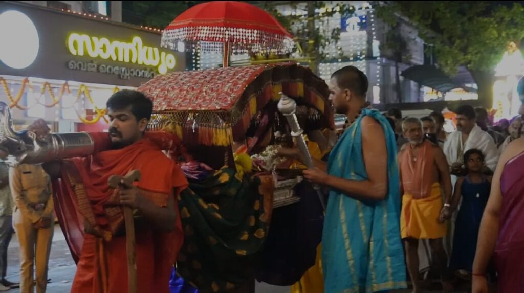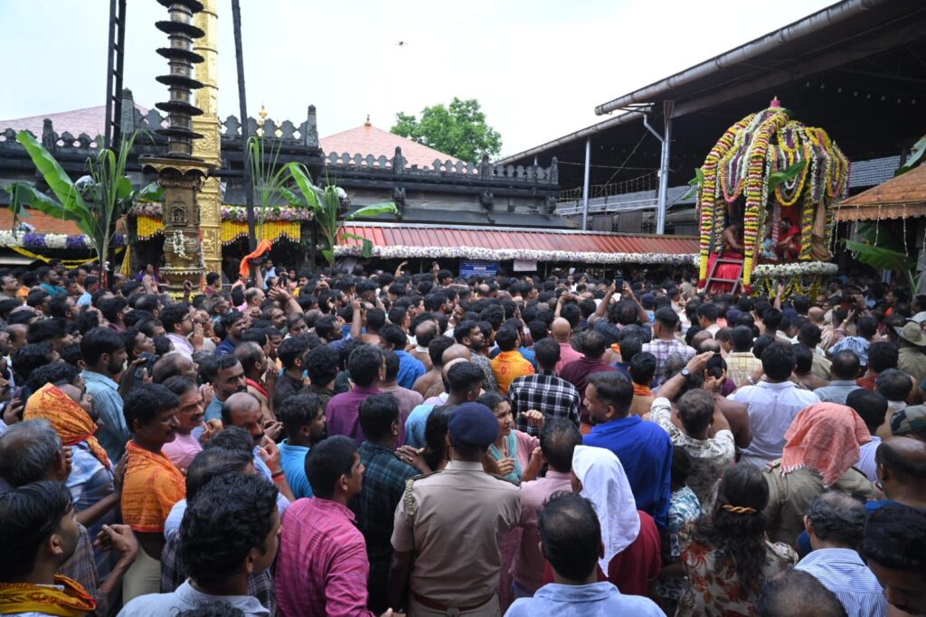 ರಥ ಪೂಜೆ ನಡೆಸಿದ್ದ ತಂತ್ರಿಗಳು, ಶ್ರೀದೇವಿಗೆ ಪೂಜೆ ನೆರವೇರಿಸಿ, ಮಂಗಳಾರತಿ ಎತ್ತಿದ ಬಳಿಕ, ಸೇರಿದ್ದ ಸಾವಿರಾರು ಭಕ್ತರು ಶ್ರೀ ದೇವಿಗೆ ಜಯ ಘೋಷವನ್ನು ಹಾಕುತ್ತಾ ರಥವನ್ನು ಎಳೆದರು. ಪಂಚ ವಾದ್ಯಗಳು, ಪಾರಂಪರಿಕ ವಾದ್ಯಗಳು, ಕೇರಳದ ಚೆಂಡೆ ತಂಡಗಳು ಭಾಗವಹಿಸಿದ್ದವು. ಬಳಿಕ ಉತ್ಸವ ಮೂರ್ತಿಯನ್ನು ಮರಳಿ ಗರ್ಭಗುಡಿಗೆ ಕೊಂಡೊಯ್ಯಲಾಯಿತು.