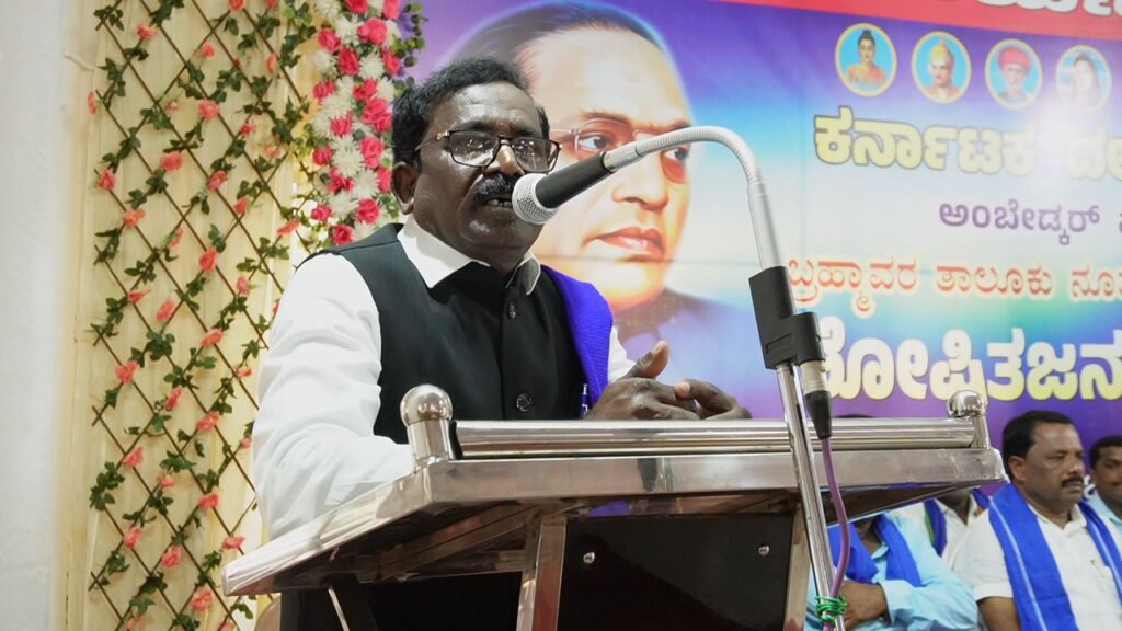 ಅವರು ಭಾನುವಾರ ಬ್ರಹ್ಮಾವರದ ಹೋಟೆಲ್ ಆಶ್ರಯ ಹೋಟೆಲ್ ಸಭಾಭವನದಲ್ಲಿ ಹಾಕಲಾದ ಬಿರ್ತಿ ನಾರಾಯಣ ಮಾಸ್ತರ್ ವೇದಿಕೆಯಲ್ಲಿ ಕರ್ನಾಟಕ ದಲಿತ ಸಂಘರ್ಷ ಸಮಿತಿ ಅಂಬೇಡ್ಕರ್ ವಾದ ಉಡುಪಿ ಜಿಲ್ಲಾ ಸಮಿತಿಯ ಬ್ರಹ್ಮಾವರ ತಾಲೂಕು ನೂತನ ಪದಾಧಿಕಾರಿಗಳ ಪದಗ್ರಹಣ ಸಮಾರಂಭ ಹಾಗೂ ನಡೆದ ಕರ್ನಾಟಕ ದಲಿತ ಸಂಘರ್ಷ ಸಮಿತಿ ವತಿಯಿಂದ ಹಮ್ಮಿಕೊಳ್ಳಲಾದ ಶೋಷಿತಜನ ಜಾಗ್ರತಿ ಸಮಾವೇಶವನ್ನು ಉದ್ಘಾಟಿಸಿ ಮಾತನಾಡಿದರು.