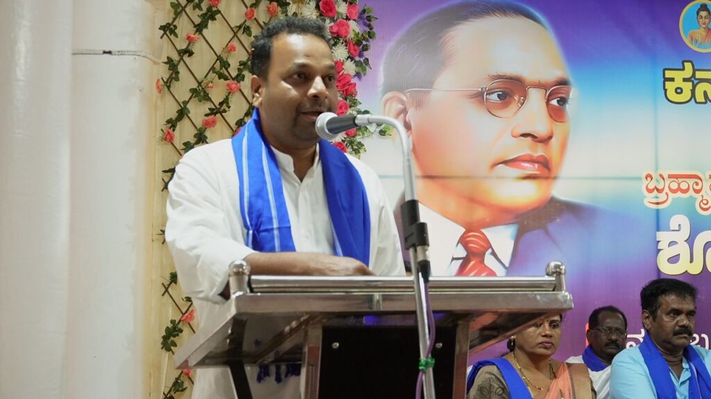 ಉದ್ಯಮಿ ಪ್ರಸಾದ್ ರಾಜ್ ಕಾಂಚನ್ ಮಾತನಾಡಿ, ಮನುಷ್ಯತ್ವದ ಜಾತಿಯಾಗಬೇಕೇ ಜಾತಿ ಆಧಾರಿತ ಸಮಯದಾಯವಾಗಬಾರದು. ಅದಕ್ಕಾಗಿ ಇರುವ ಮೀಸಲಾತಿಯನ್ನು ಸದುಪಯೋಗಪಡಿಸಿಕೊಂಡು ಶೈಕ್ಷಣಿಕವಾಗಿ ಮುಂದೆ ಬರಲು ಪೂರಕ ವಾತಾವರಣ ಸೃಷ್ಟಿಸಿ ವಿದ್ಯಾವಂತರನ್ನಾಗಿ ಮಾಡುವ ಮೂಲಕ ಮುಖ್ಯವಾಹಿನಿಗೆ ಬರುವಂತೆ ಮಾಡಿದಾಗ ದೇಶದಲ್ಲಿ ಸಮಾನತೆ ಸಾಧ್ಯ ಎಂದರು. ಪ್ರತಿಯೊಬ್ಬರು ಭಾರತದ ಸಂವಿಧಾನದ ಪುಸ್ತಕ ಓದುವ ಪ್ರತಿಜ್ಞೆ ಮಾಡಬೇಕು ಎಂದರು.